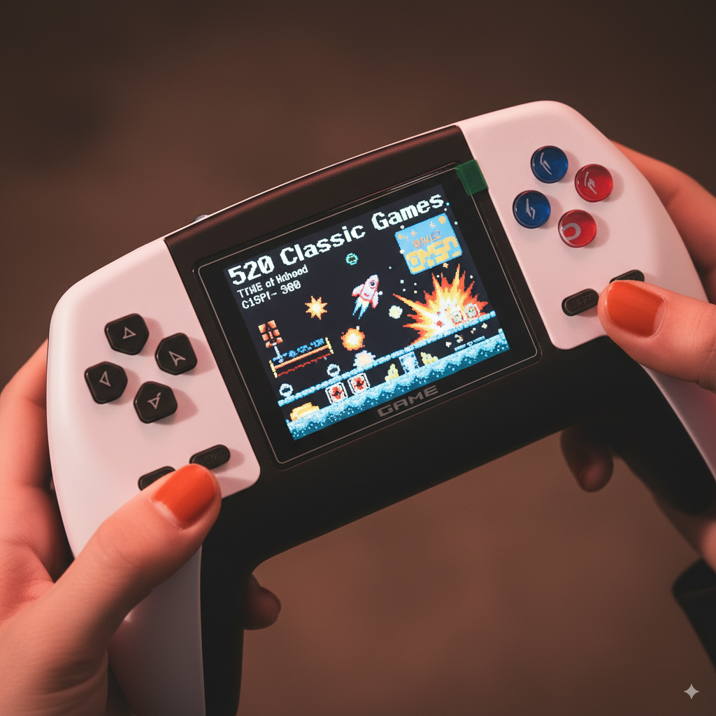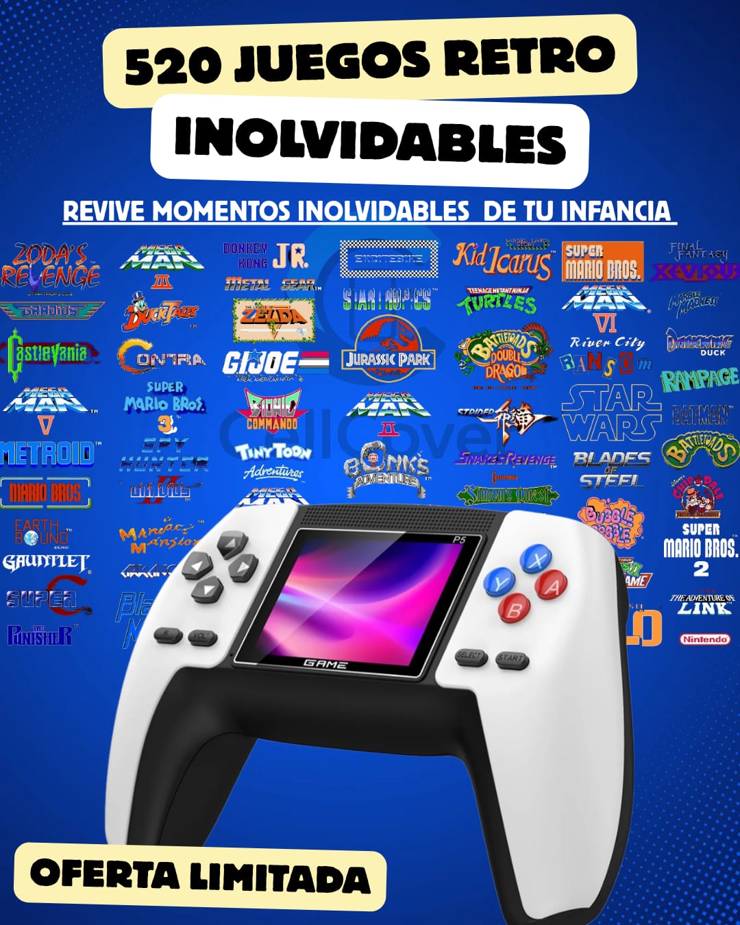 Cuenta con una pantalla LCD a color de 3 pulgadas, un diseño compacto y liviano, y 520 juegos clásicos integrados, por lo que no necesitás descargas, internet ni configuraciones.